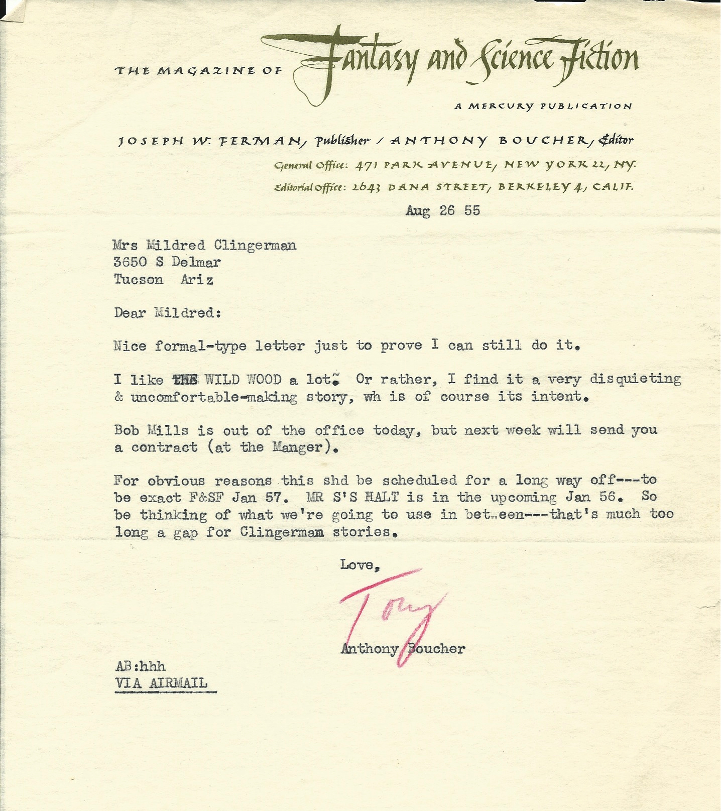 Tony Boucher letter – 1955